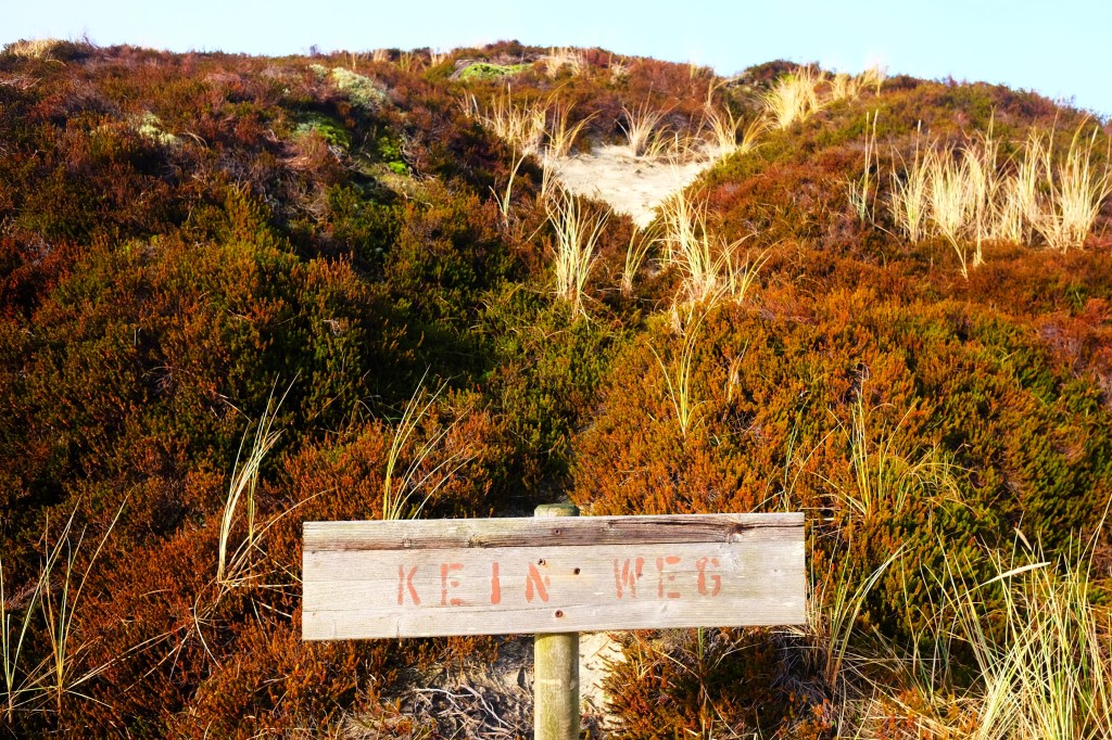 Das Wichtigste: unsere Erwartungen wurden voll erfüllt! Die schlanke Erreichbarkeit von offenem Meer und Nationalpark Wattenmeer war ideal für kilometerlange Spaziergänge. Die naturbelassenen Streifen mit hohen Dünenlandschaften erwecken den Anschein von Unberührheit, der nur von gutgemeinten Schildern desillusioniert wird. Ok, die Sonne hätte etwas mehr scheinen können. Aber der Weg am Roten Kliff hatte im Nebel eine ganz besondere Stimmung, auch wenn die Aussicht von der Düne Uwe – mit 52,5 Metern der höchste Punkt auf Sylt – dadurch begrenzt war. Uns erscheint die Jahreszeit ideal für einen Aufenthalt auf einer Nordseeinsel – kühl, wild und (relativ) einsam. Wir mochten uns nicht vorstellen, wie sich im Sommer auf den Straßen die SUV Stoßstange an Stoßstange bewegen…