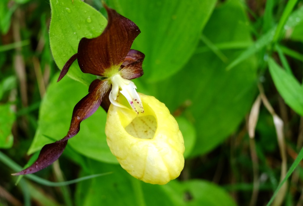 Ebenfalls nur Gutes im Sinn hatte der Namensgeber, als er die schönste unserer heimischen Orchideen passenderweise Frauenschuh taufte. Diese Orchidee gilt nach der Roten Liste als gefährdet und ist streng geschützt. Auf dem Burgberg im Naturpark Solling-Vogler im Weserbergland legten fleißige Hände an steilen Hängen ein Frauenschuhreservat an. Auch mit dem Hintergedanken, dass die Besuchenden auf den vorgesehenen Wegen bleiben. Das Reservat erreicht man über einen Fußweg von einigen Kilometern den Burgberg hinauf. Oder man erreicht es gar nicht wegen der schlechten Ausschilderung. Vielleicht geschah das ebenfalls mit Hintergedanken, weil wilde Pflanzen manche Mitmenschen dazu reizen, diese auszubuddeln und mitzunehmen. Wer bei der Suche nach dem Reservat nicht locker lässt, wird ab Mitte Mai mit ganzen Kolonien von Frauenschuhen belohnt. Und nicht nur diese sind sehenswert – die Wald-Akelei hat eine eigene Schönheit und das Zweiblatt ist zwar unscheinbar, aber immerhin auch eine Orchidee.